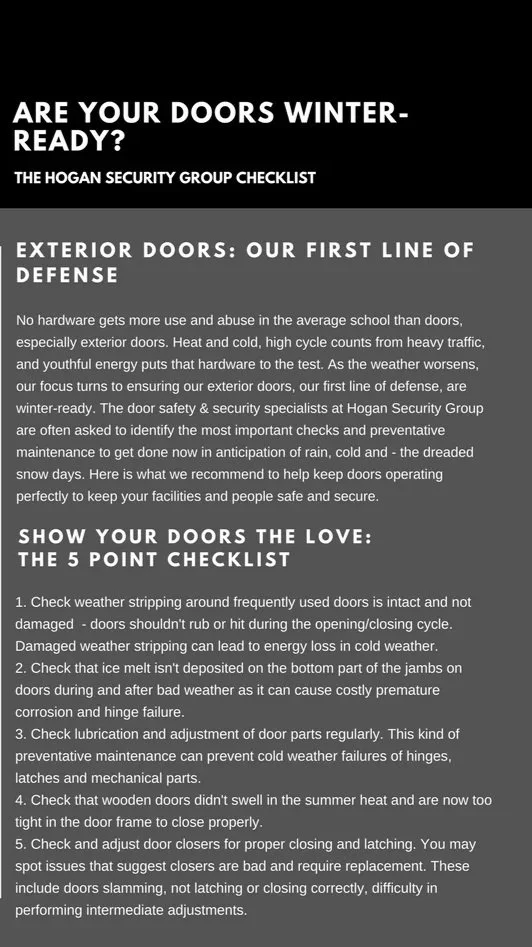 It's time to show your doors the love, and if you are a school business administrator, facilities manager, or responsible in any way for school safety and security, our 5 point exterior door checklist is here for you.